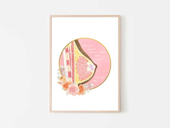 Dark Skin Tone Breast Anatomy Diagram With Flowers Plastic Etsy